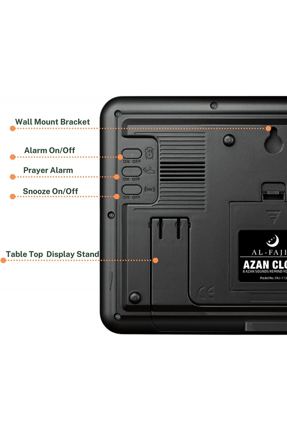 Este reloj es perfecto para el hogar o el trabajo para recordarte con una llamada a la oración. Características técnicas: AZAN completo (para todas las ciudades del mundo): un sonido digital de alta calidad Azan para todas las oraciones puede ser reproducido.