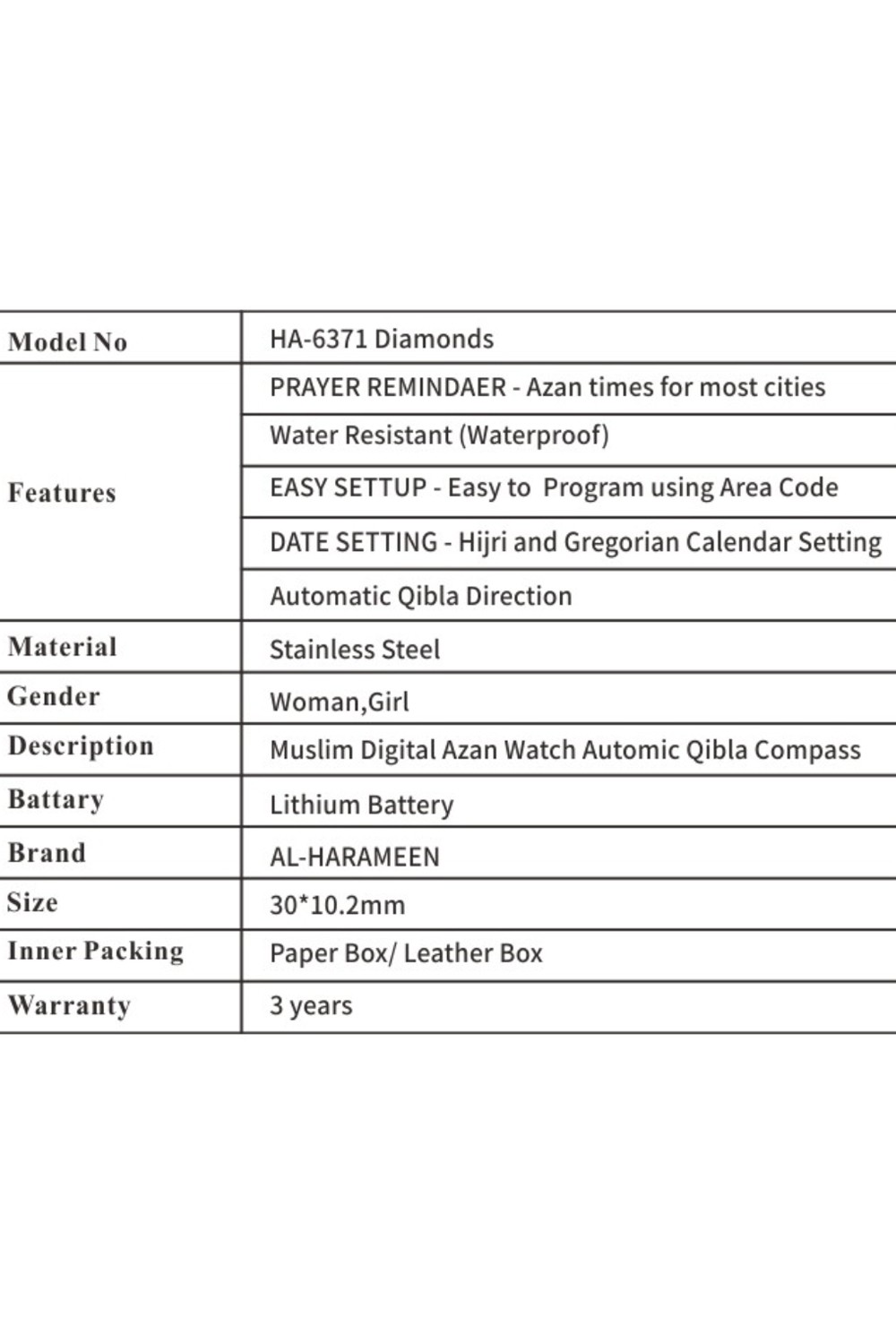 Al Harameen Azan HA-6371 digitaalinen kello, vedenkestävä Azan-aikakello nahkalahjalaatikossa