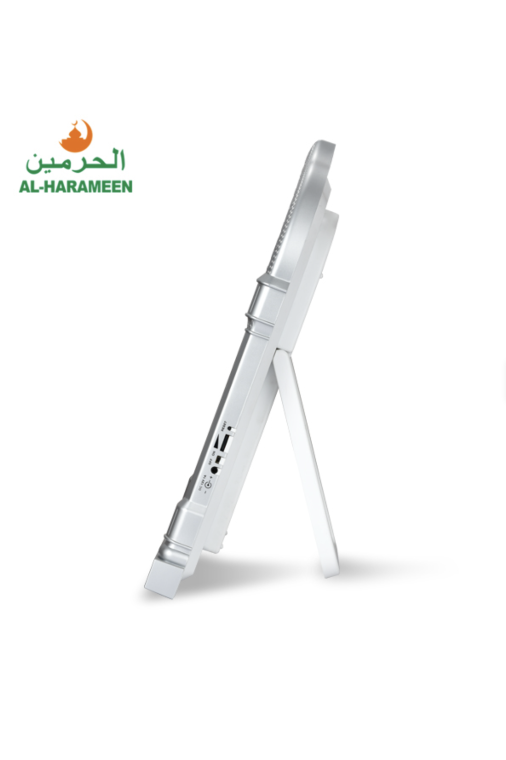 Seinäkello Adhan AL-HARAMEEN HA-4008 automaattisella rukouskutsulla 5 päivittäistä rukousta varten. Näyttää rukousajat yli 1150 kaupungille ympäri maailmaa, Qibla-suunnan, Hijri- ja Gregoriaaniset kalenterit, lämpötilan, kesäajan, Iqamah-hälytyksen ja lempeän muistutuksen. Kaukosäädin sisältyy, kaksikielinen (arabia/englanti), säädettävä äänenvoimakkuus ja taustavalo. Saatavana kultaisena tai hopeisena. Ihanteellinen kotiin, toimistoon tai moskeijaan. Nopea toimitus Eurooppaan Safwa Boutiquen kautta.