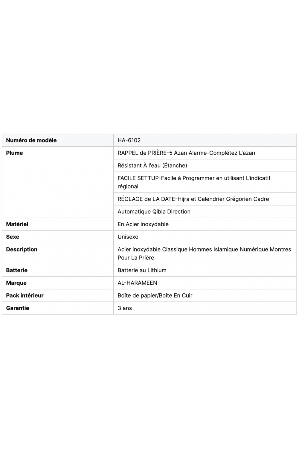 Relógio AL-HARAMEEN HA-6102 FRBL O modelo é analógico, com um display digital. O relógio Al-Haramain está equipado com as últimas tecnologias internacionais e pré-programado