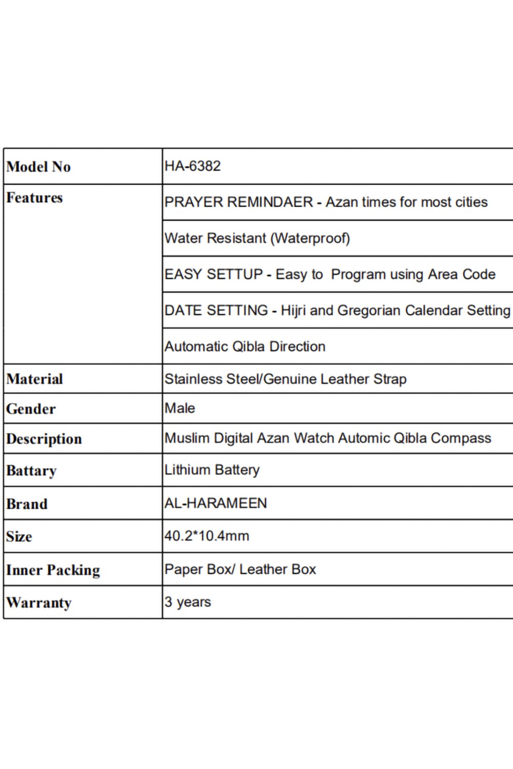 Luxusklocka AL-HARAMEEN HA-6382Azan-tiden för alla städer i världen: alla städer i världen är förprogrammerade i klockan. Och andra mindre platser kan programmeras med hjälp av latitud, longitud och GMT-information.